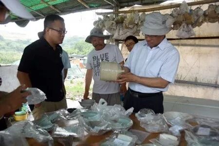 2017年暑假,人大10名硕士研究生在此次项目中完成了田野考古实习。大榭是宁波近海的一个较大的离岛,七、八月间正是高温季节,天气时而闷热潮湿,时而骄阳似火,由于频繁的气候交替,工地上的我们每日总是汗流浃背。盛夏的太阳威力无穷,只要它挂在空中,我们都必须全副武装:遮阳帽、口罩、防晒衣、速干衣裤、防晒霜等都是上工的必备品。初抵大榭时,天气酷暑难耐及水土不服等问题,给大家带来了很多困难,有的同学甚至出现湿疹、头晕、反复感冒等等不适症状,但是大家仍然坚持工作在第一线,认真完成各自承担的任务,克服发掘过程中遇到的种种困难。
